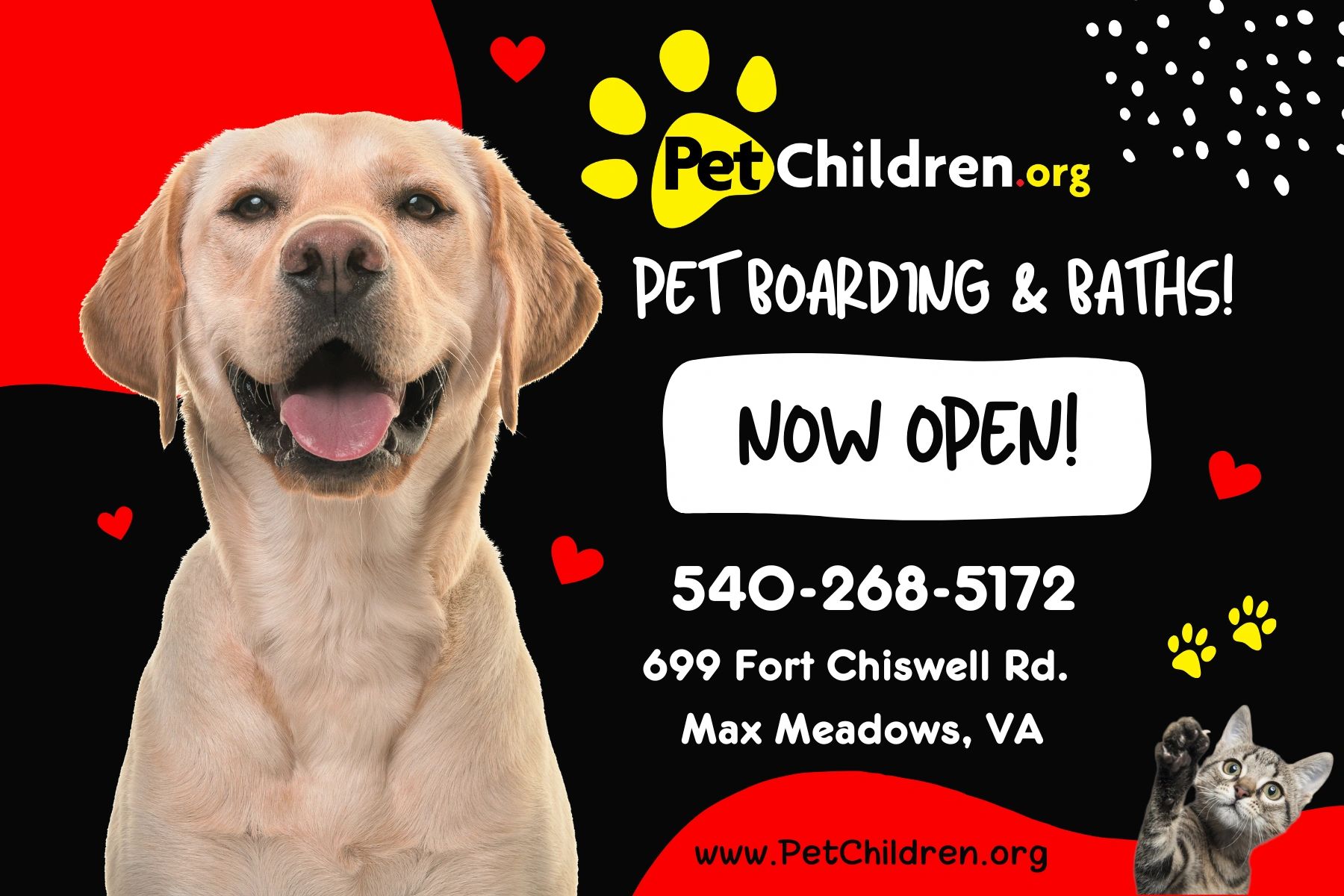 Smelly Dog? We got you covered! PetChildren offers professional bath and grooming services for dogs at our Fort Chiswell (Max Meadows) location. Your pup will come home looking (and smelling) fresh and clean after their fun day at the spa. Let us handle all the dirty work